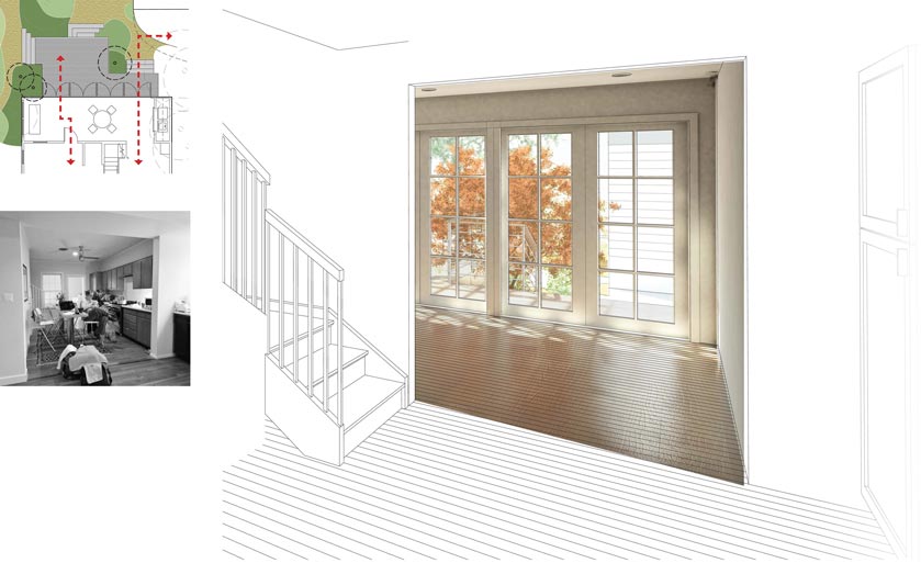 Ms. Marshall hired us to create a conditioned addition to her home. The existing arrangement of spaces did not provide her with any opportunities to be visually connected to her backyard from her kitchen.